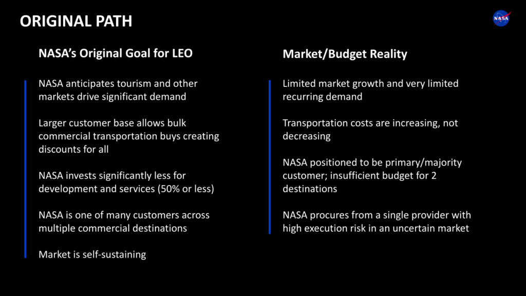 - Commitment to continued presence in LEO: It was repeatedly stated that NASA is committed to maintaining continuous human presence in LEO beyond the ISS, which is reaching the end of its life, and that “doing nothing is not an option”.