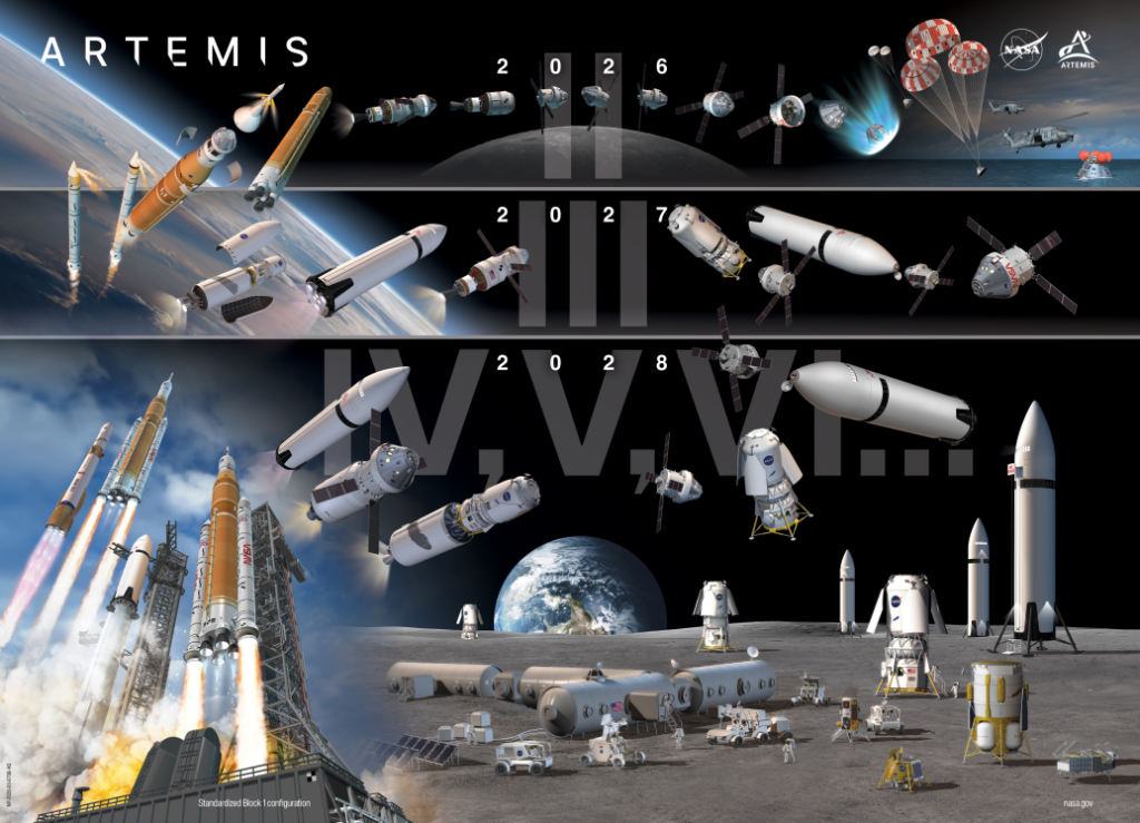 - The Artemis IV Race to the Surface: For the first time, the question that arose with the Artemis changes announced in March has been answered: The first crewed landing, scheduled for Artemis IV in 2028, will be flown by whichever HLS provider is ready first, creating a direct competition between SpaceX and Blue Origin, informed by the results of the Artemis 3 flight. Artemis V, also listed for 2028, has its mission profile and hardware even more undefined as of now.
